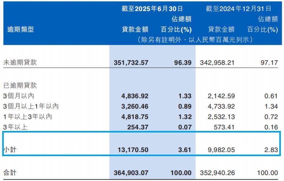 除去不良贷款,江西银行2025年上半年的逾期贷款余额达到131.70亿元,较2024年末增加约31.88亿元,增幅高达32.1%。其中,3个月以内的逾期贷款金额从21.43亿元增至48.37亿元,增加26.94亿元;1年以上3年以内的逾期贷款金额从25.32亿元增至48.19亿元,增加22.87亿元。短期逾期贷款的激增,意味着未来不良贷款规模可能进一步扩大。