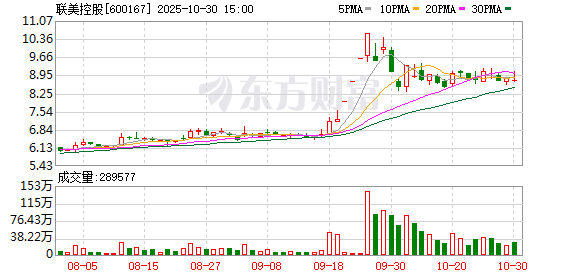 联美控股10月30日公告,2025年第三季度实现营业收入2.57亿元,同比下降26%;归属于上市公司股东的净利润1857.49万元东兴证券,同比下降39.60%;基本每股收益0.0084元。前三季度实现营业收入21.56亿元,同比下降6.19%;归属于上市公司股东的净利润5.43亿元,同比增加6.88%;基本每股收益0.2442元。